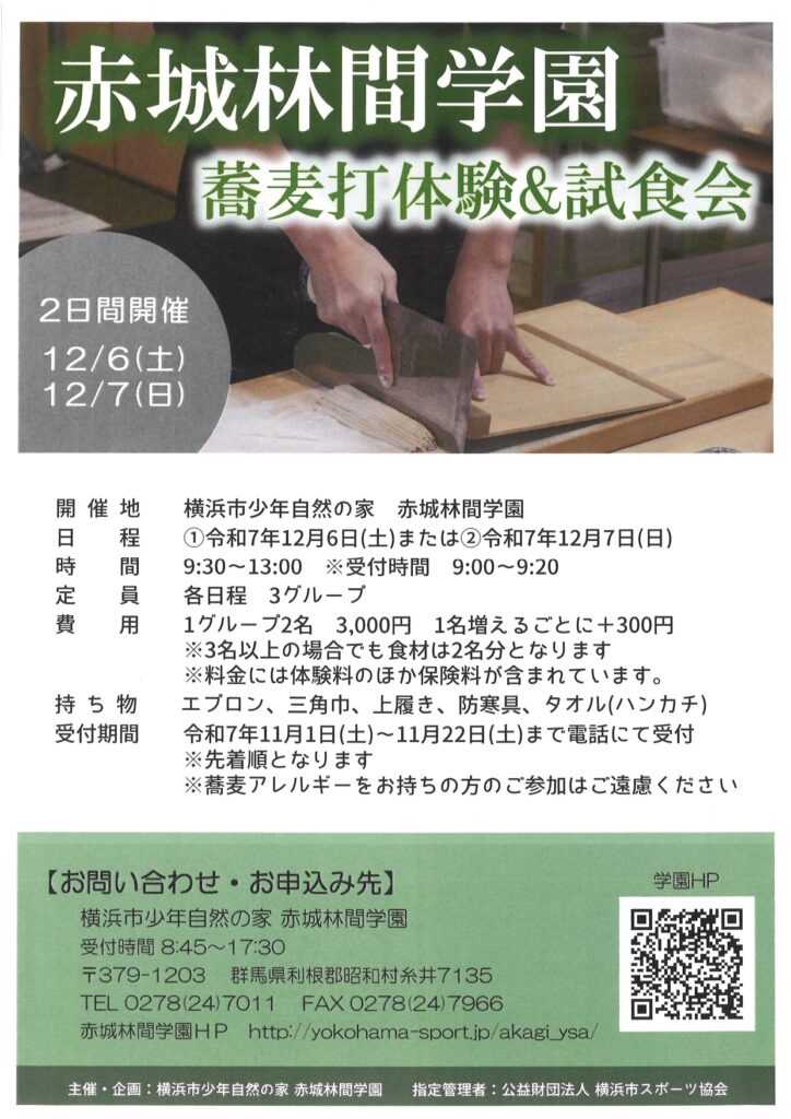 ※そばアレルギーをお持ちの方のご参加はご遠慮ください。