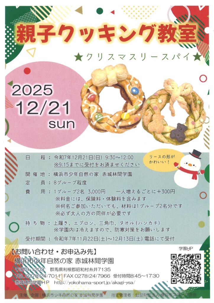 「親子クッキング教室〜クリスマス〜」のお知らせ