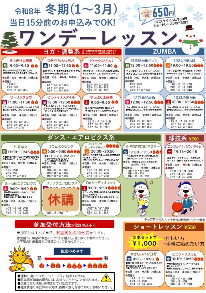 【日程表】冬のワンデーレッスン