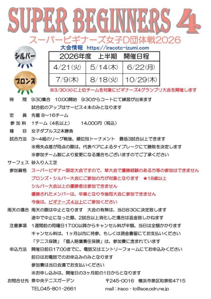 2026年上半期(4月~)の月例女子団体戦要項です。