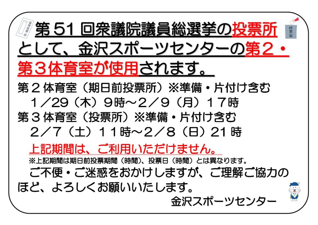 第51回衆議院議員総選挙にともなう施設の利用制限について