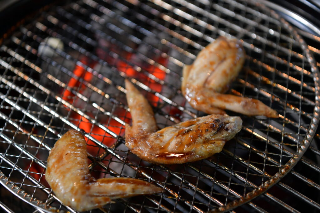 バーベキューグリルと炭火のバーベキュー