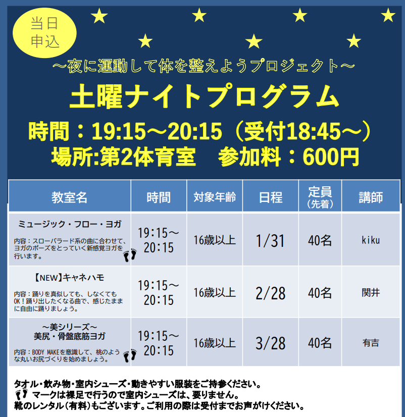 【土曜ナイトプログラム】1月~3月開催のご案内