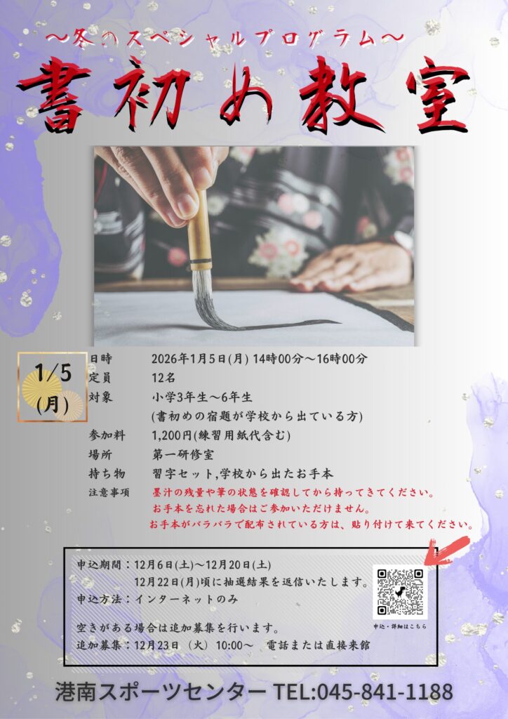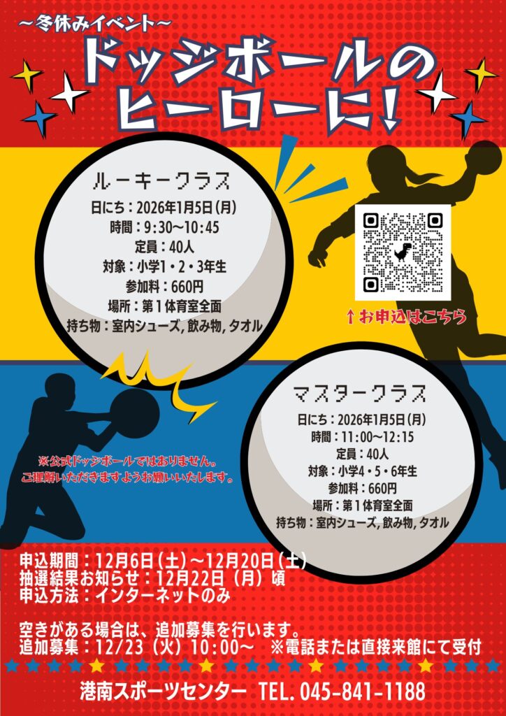 追加募集:12月23日(火)10:00~ 電話または直接来館にて受付