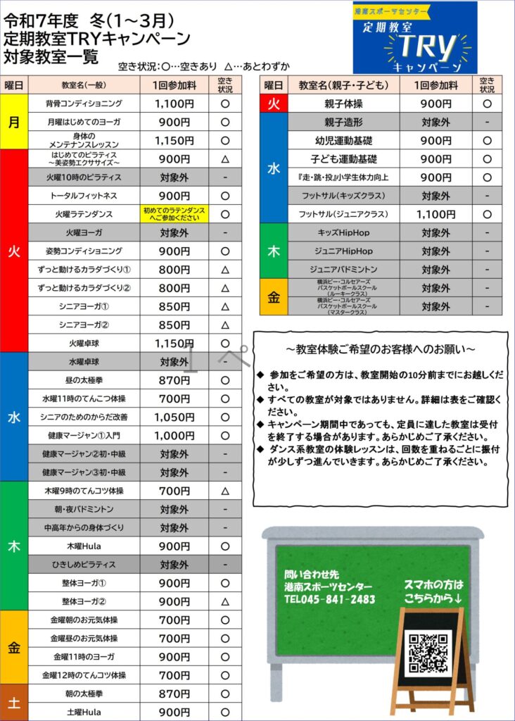 2月1日(日)から冬の定期教室TRYキャンペーンを実施します。