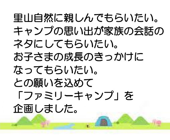 | 定 員 | 6家族 定員を超えた場合は抽選となります |