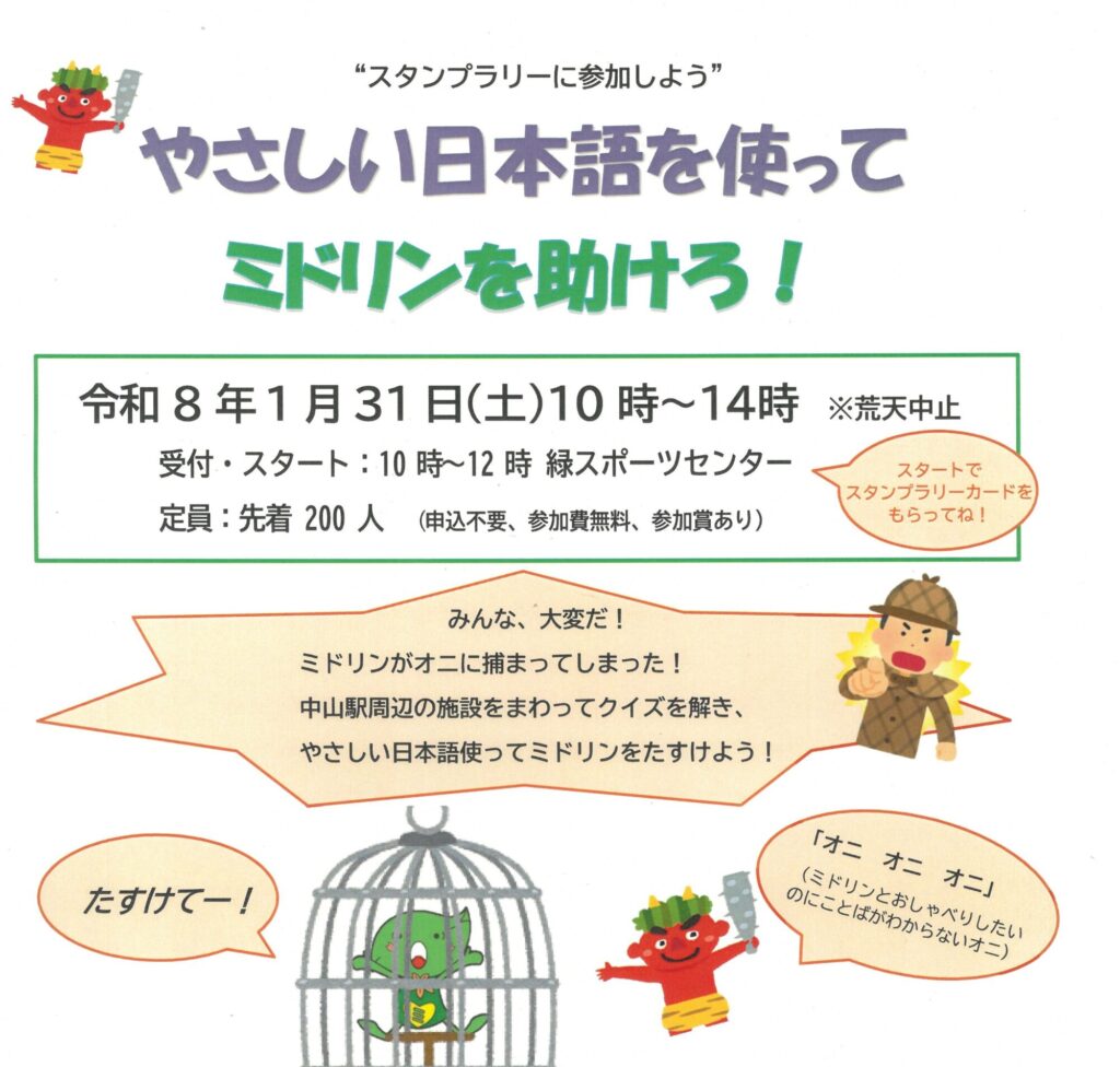 【1/31(土)】「やさしい日本語を使ってミドリンを助けろ!」 スタンプラリーイベント開催🍃