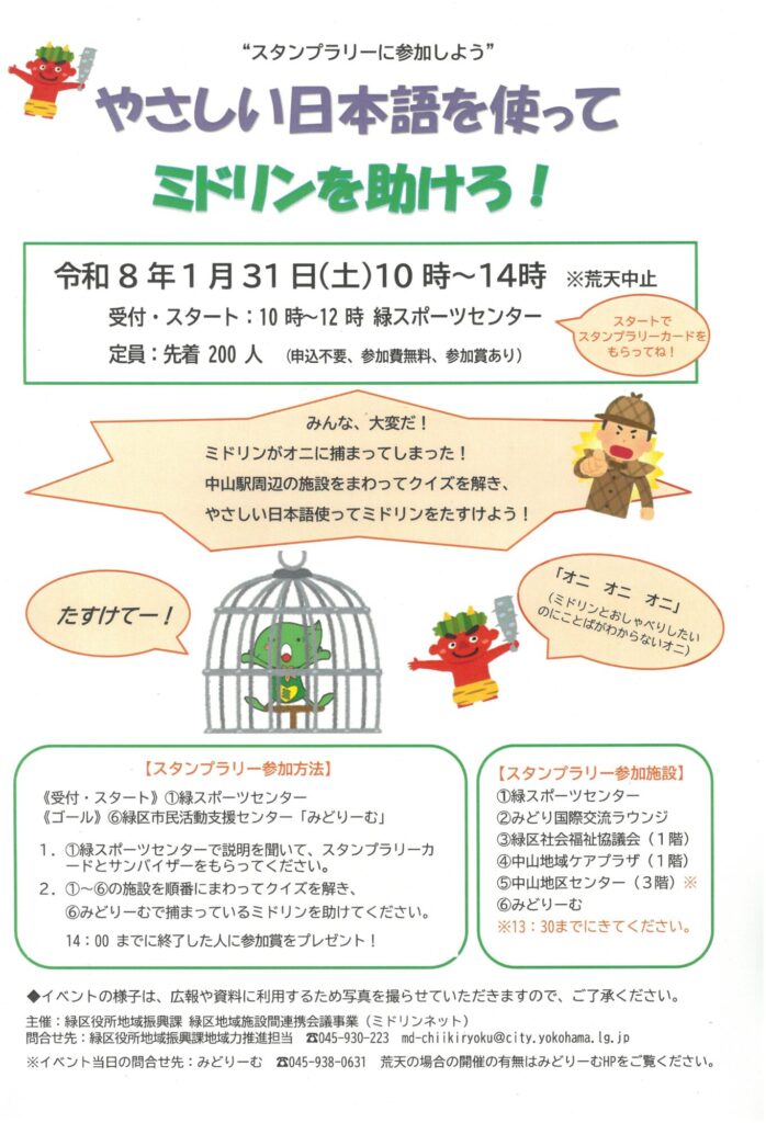 1/31(土)、当スポーツセンターが位置する中山駅周辺施設にて、スタンプラリーイベントを開催します!