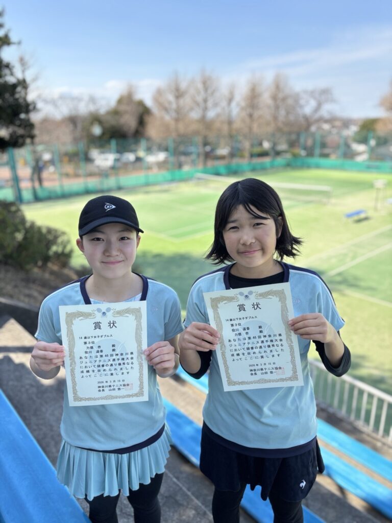 アカデミー 3位!5位! 神奈川県Jrテニス選手権大会 2026 3/25 お知らせ ピックアップ 神奈川県ジュニアテニス選手権大会 14歳以下女子ダブルス 3位 力徳選手 関東大会進出!※写真1の左側 14歳以下女子ダブルス 5位 関口選手 関東大会進出!※写真2の左側 お知らせ ピックアップ