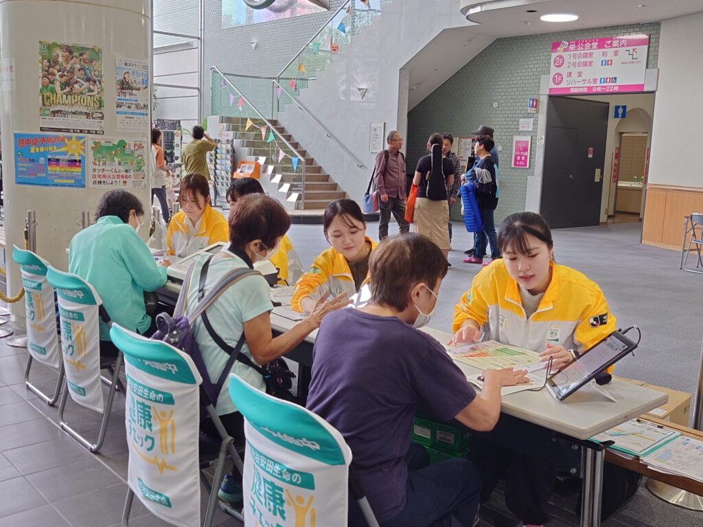 さかえ区民活動支援協会・栄消防署・栄火災予防協会・栄水再生センター・栄区制40周年記念事業・ぷらさんぬ(パン販売)・明治安田生命保険相互会社によるブース。栄区制40周年記念事業では今年の区制39周年を記念して、感謝の気持ちを言葉にする「ありがとうの木」が登場来館された皆様より様々なありがとうのメッセージをいただきました。明治安田生命保険相互会社ブースでは最先端の健康チェック機器を使用して短時間で全身の健康状態を知ることができる健康チェックコーナーが展開。イベントとイベントの合間に気軽にご自身の健康を見直せる機会づくりとしていただきました。