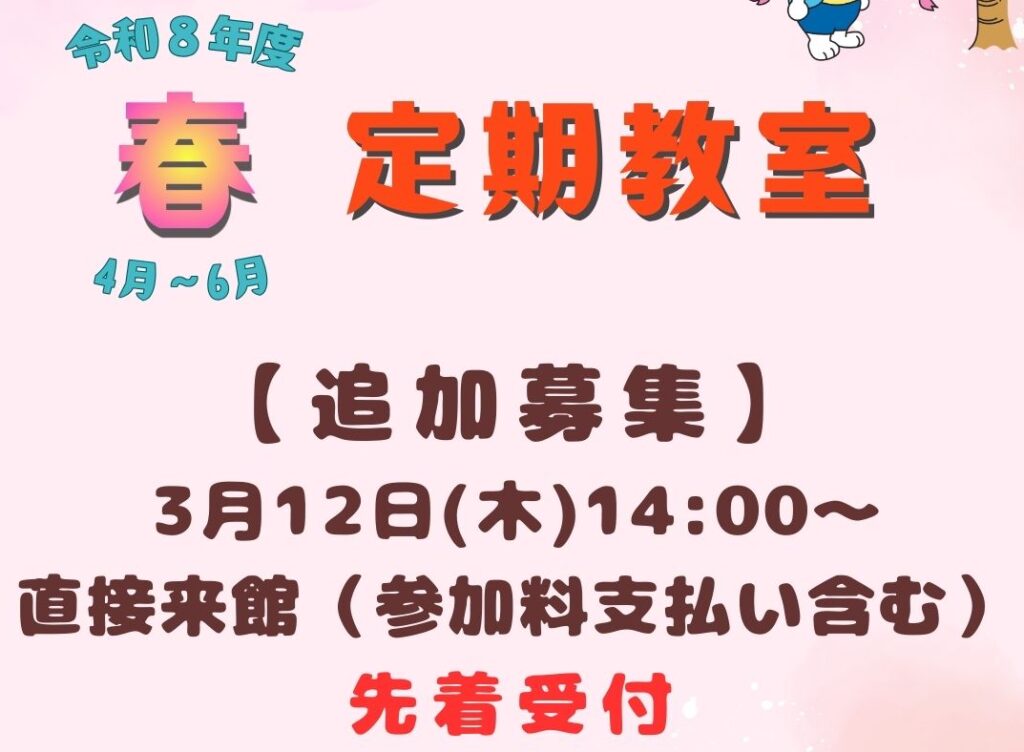 8年度 春の教室 追加募集のご案内