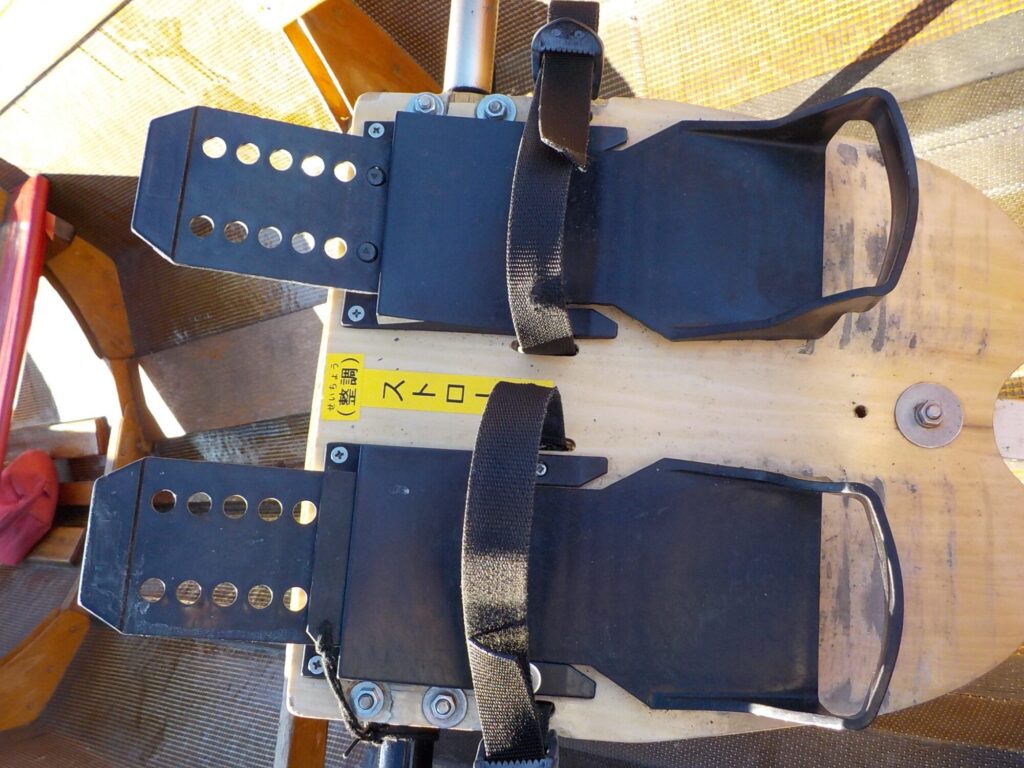 下記画像の箇所に、靴をベルトで固定しますので