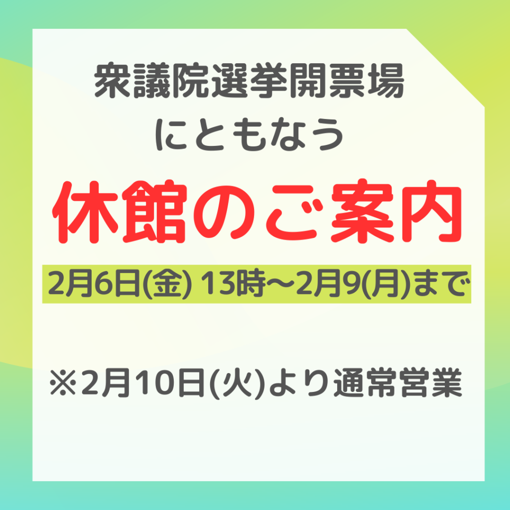 【衆議院選挙開票場による閉館】 2月6日(金)13時~2月9日(月)