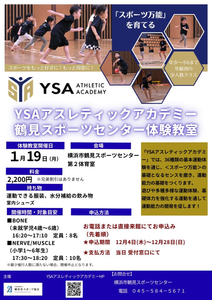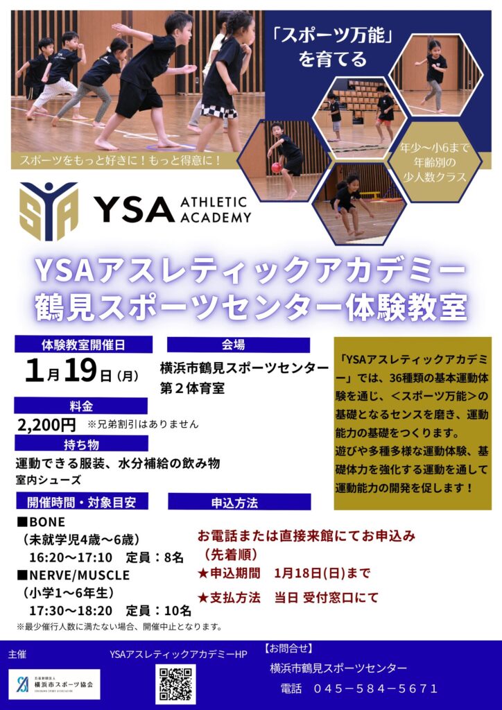 1/19(月)に子供向け教室「YSAアスレティックアカデミー」を開催いたします!