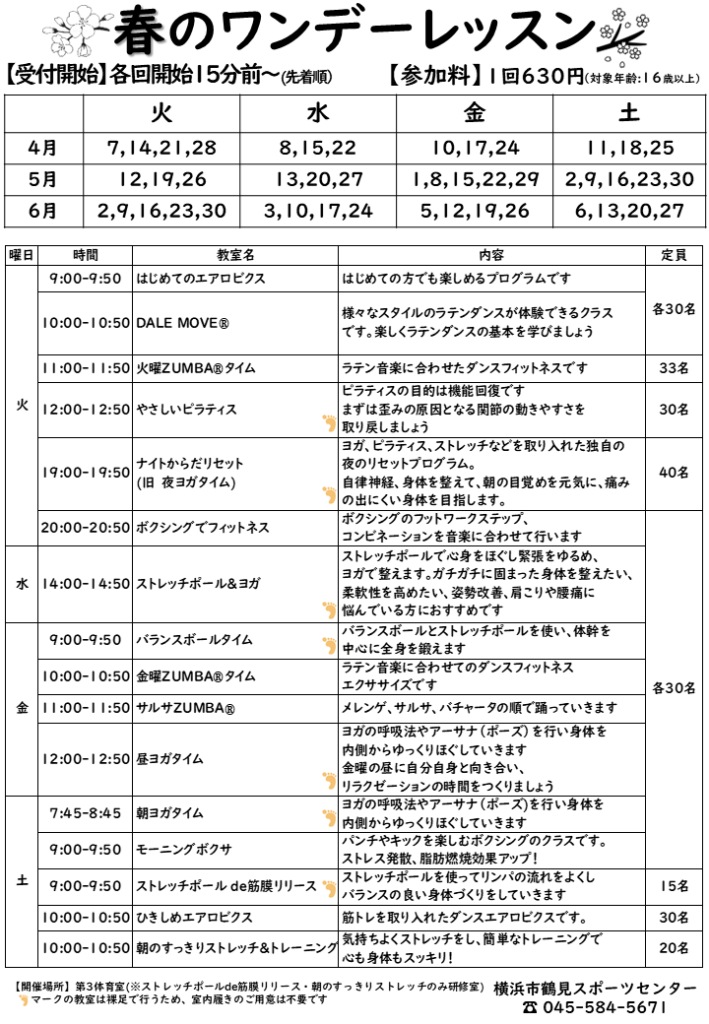 日頃より鶴見スポーツセンターの教室にご参加いただきありがとうございます。