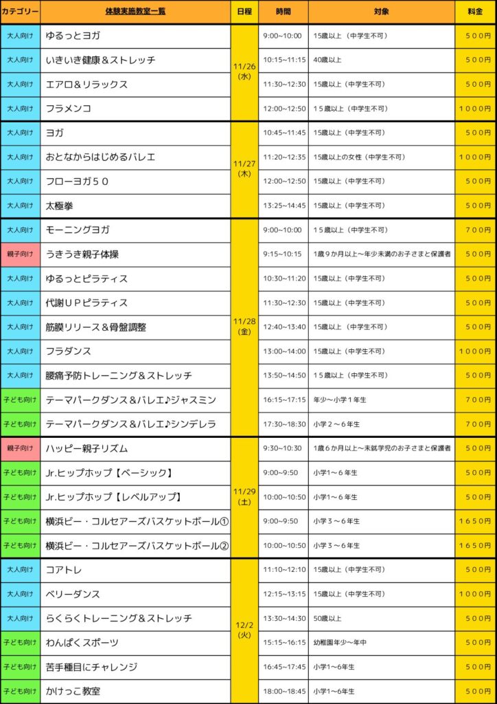 親子や子ども向け教室はもちろん、健康づくりやリラックス系など、