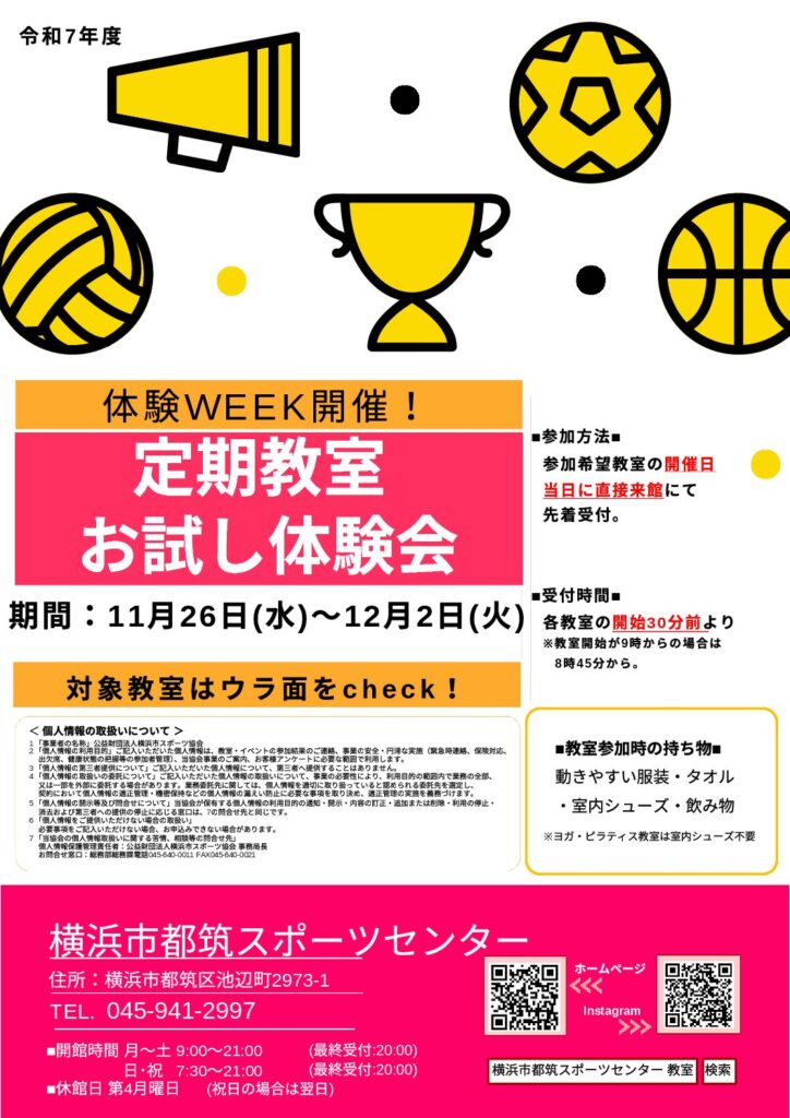 この秋、冬の定期教室に向けた「体験WEEK」を開催します。