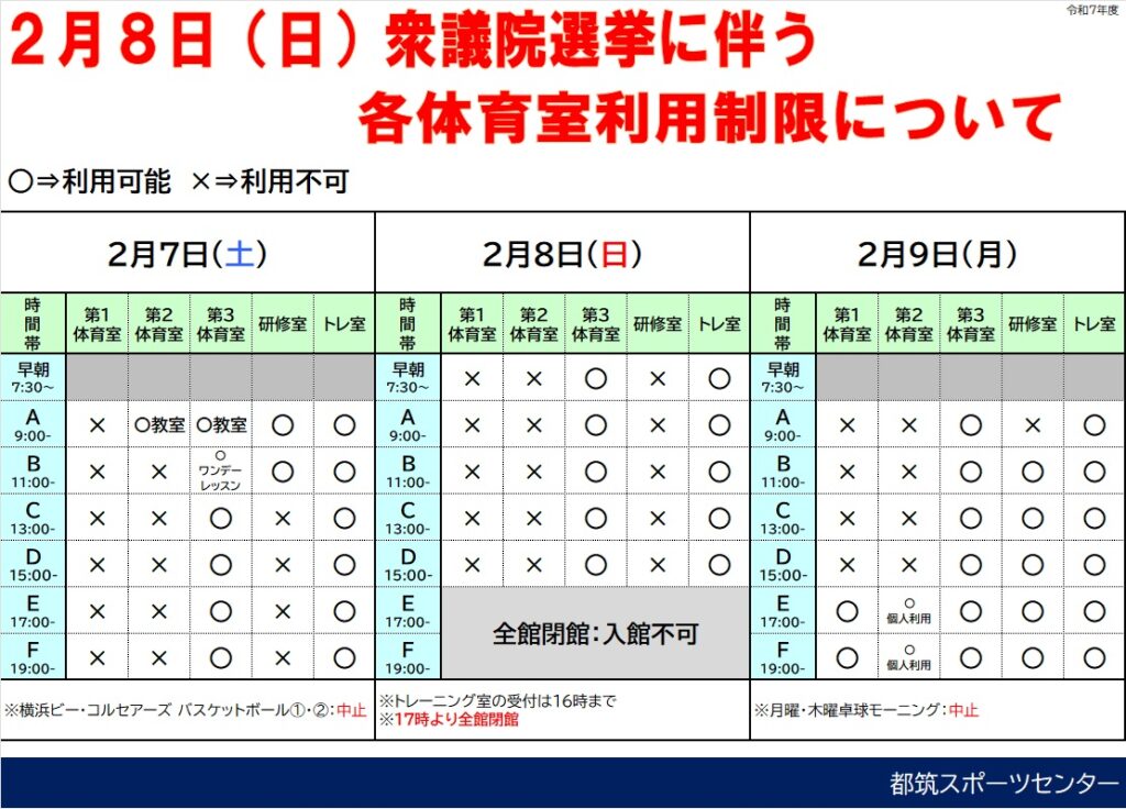 当施設は令和8年2月8日(日)に行われる衆議院議員選挙の開票所となるため、
