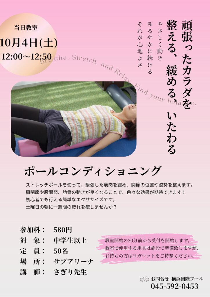 初心者の方も行える簡単なエクササイズですのでお気軽にご参加ください。