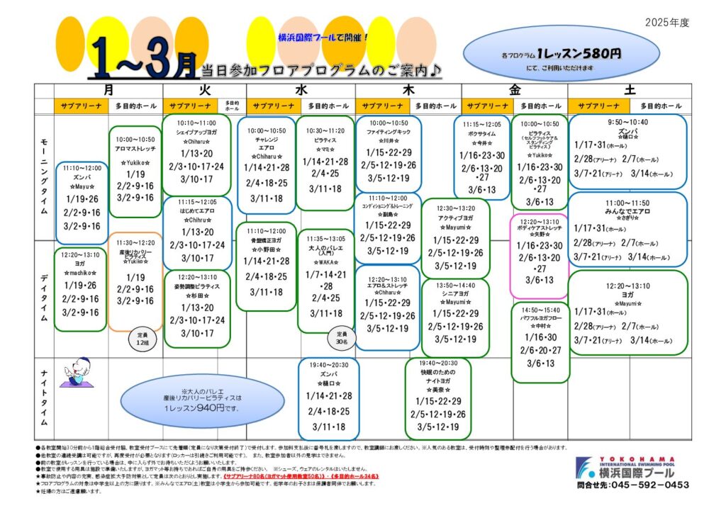 「1~3月の当日参加フロアプログラム」のスケジュールをお知らせいたします。