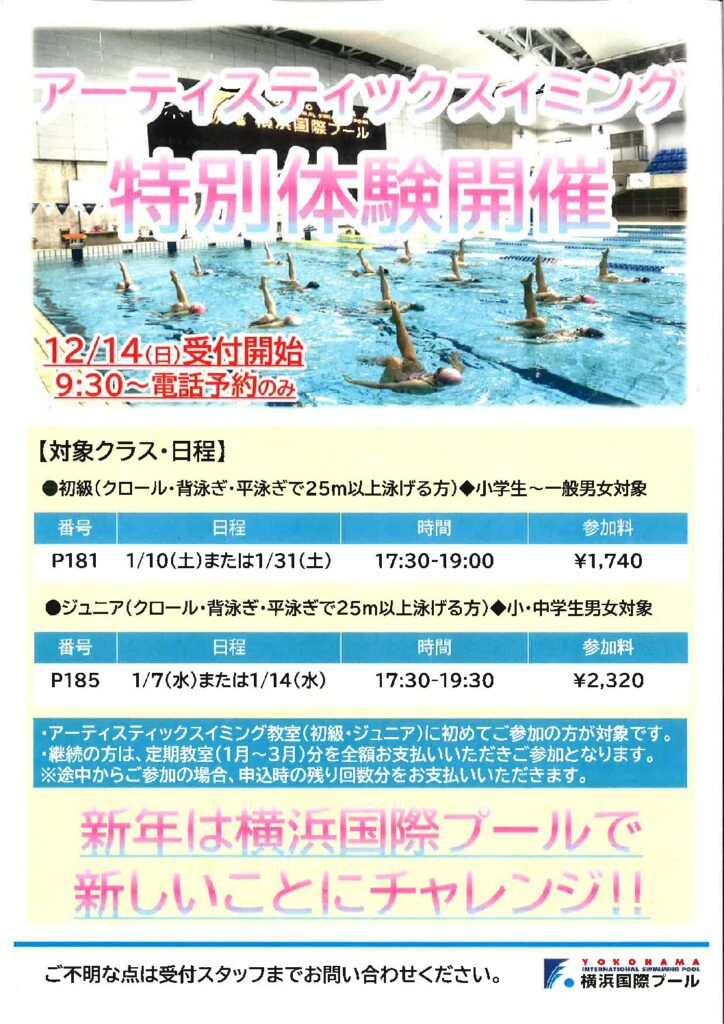 アーティスティックスイミング教室(初級・ジュニアクラス)において、初めてご参加の方を対象とした