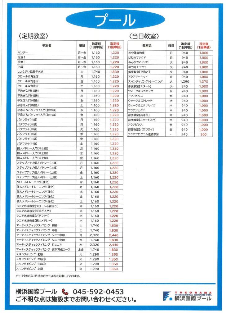 横浜国際プールの教室にご参加の皆様には、平素よりご愛顧いただき誠にありがとうございます。