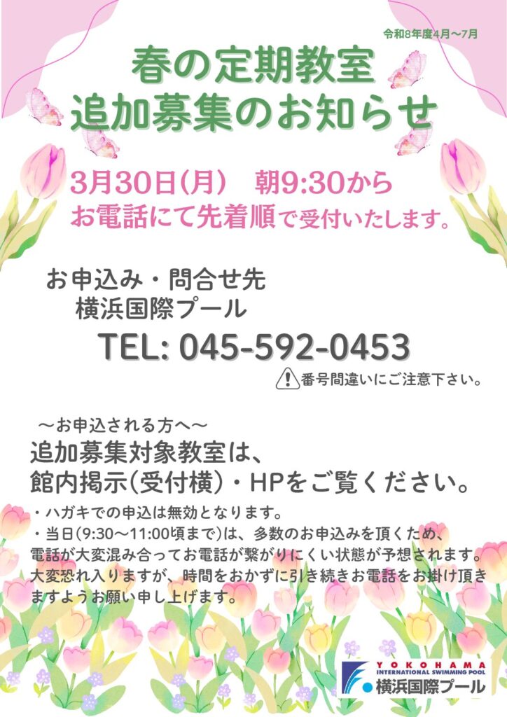 追加募集クラスの詳細は、添付の資料をご参照ください。
