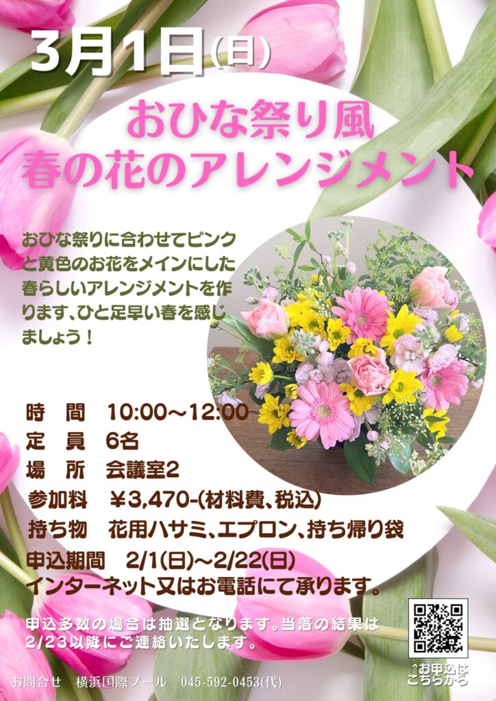 【お知らせ】3月1日(日)「おひな祭り風春の花のアレンジメント」のご案内