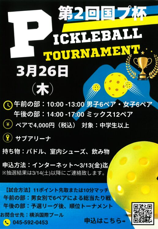 第2回国プ杯「ピックルボールトーナメント」を開催します